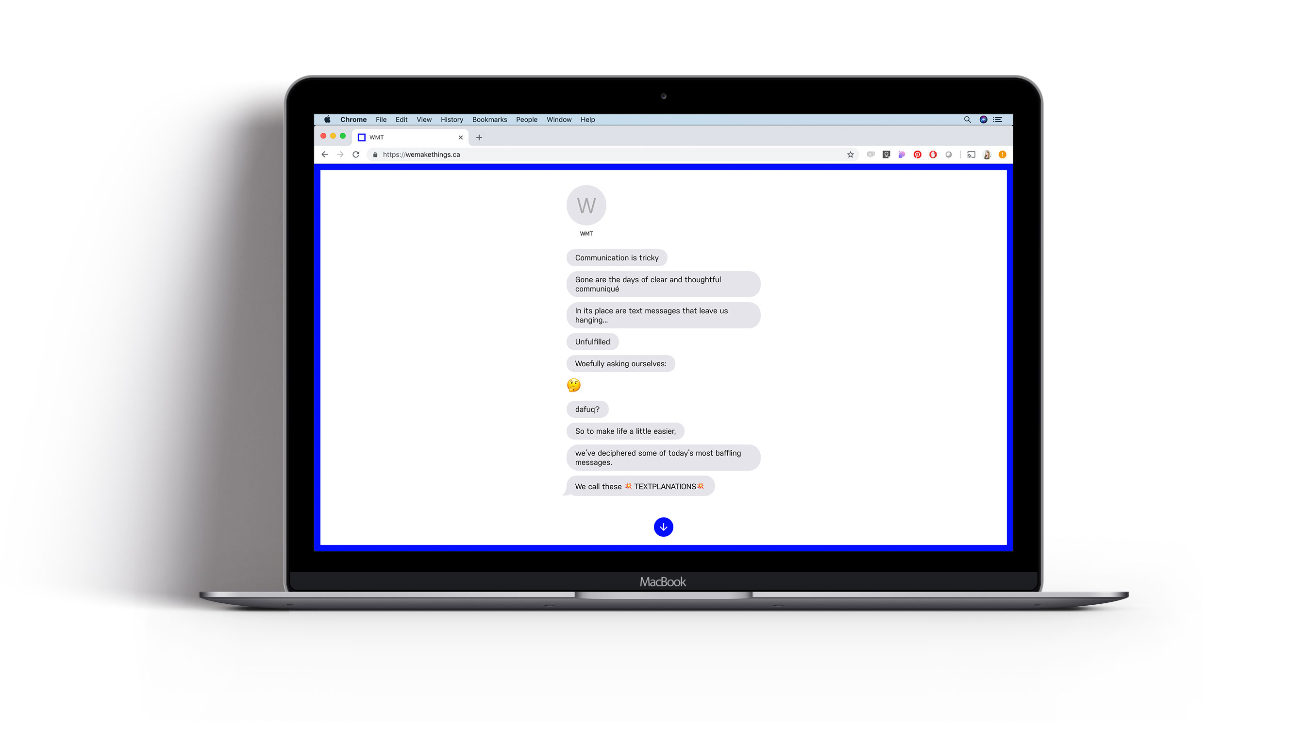 We Make Things—also known as WMT—is a brand strategy agency based in Toronto. WMT strives for clear brand communication, intriguing creative execution and most importantly, to create functional, usable solutions that address user problems.