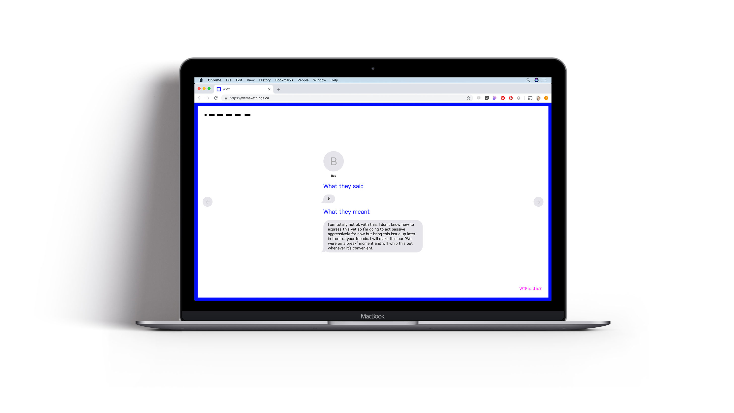 While the research was underway, we created a satirical microsite to help people decipher today's common miscommunications via text messages. It’s partly a joke, and partly a very simplified, loose metaphor of what we can do with market analysis and user data to help our clients.